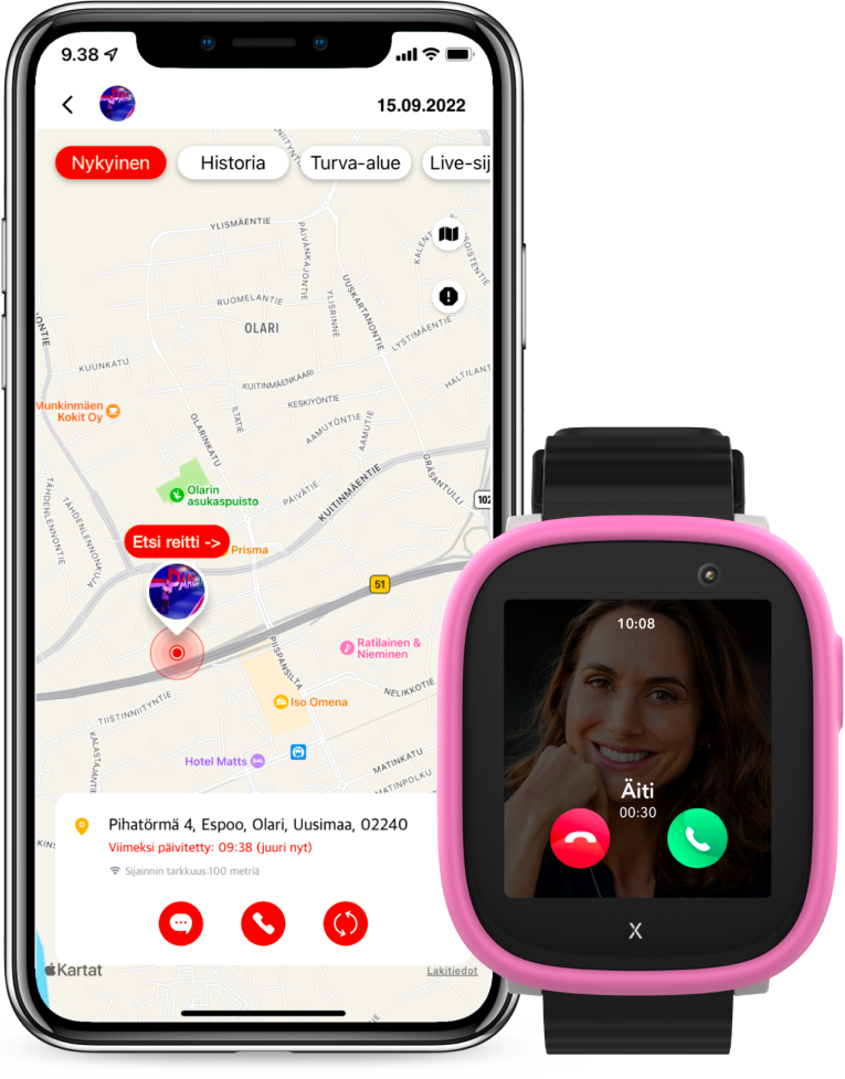 Xplora on turvallinen ja helppokäyttöinen lasten kellopuhelin. Ei pääsyä sosiaaliseen mediaan tai internetiin eikä yhteydenottoja tuntemattomista numeroista. Olemme keskittyneet siihen, mikä on lapsen kannalta tärkeintä – yhteydenpitoon läheisten kanssa.