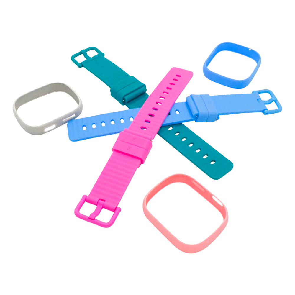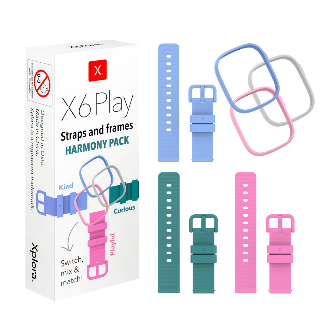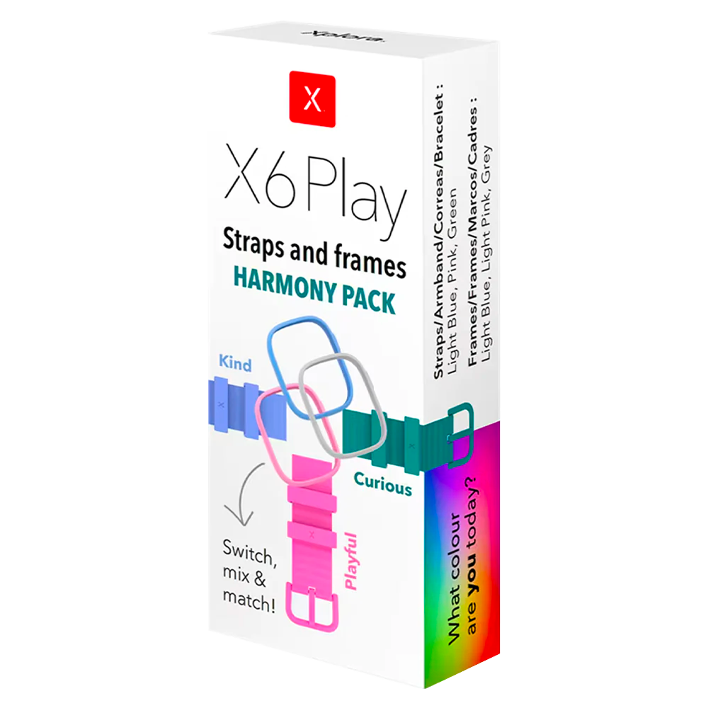 Anna lastesi ilmaista itseään väreillä Xplora X6Play Harmony Pack -kellorannekkeiden avulla. Pakkauksessa on kolme värikästä kelloranneketta ja kolme kehyssuojusta, jotka tarjoavat lisäsuojaa ja mahdollistavat samalla ainutlaatuisen ulkoasun.