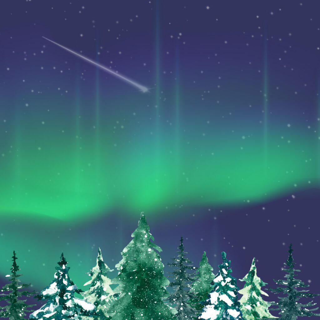 Elli ryntää ovelle. Ja aivan oikea: kaikki perheenjäsenet, mummi sekä vaari ja serkut olivatkin jo odottamassa, ja kuusen alta todella löytyy kasa ihmeellisiä paketteja, jotka loistavat kaikissa revontulien väreissä.