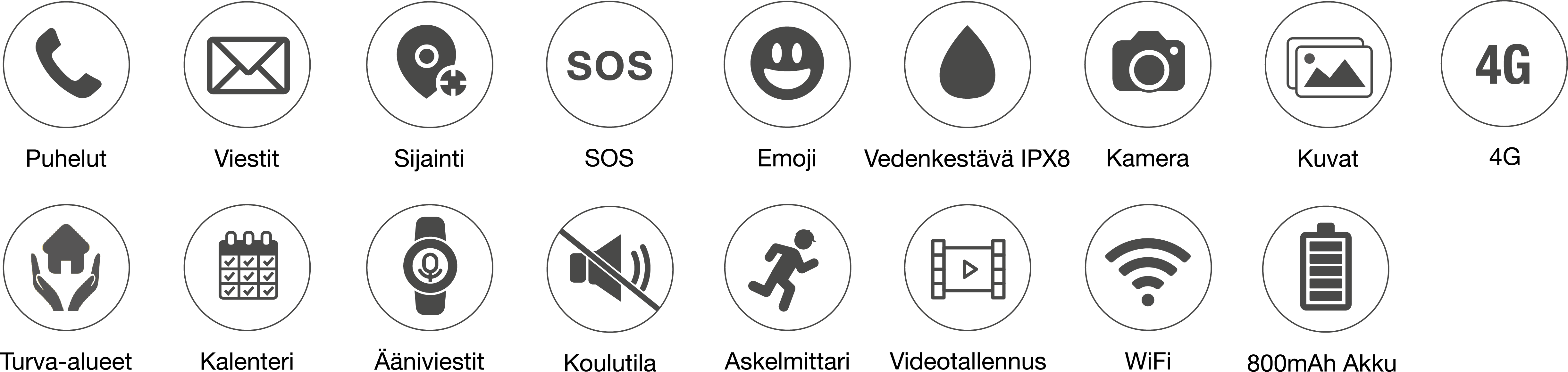 - Lapsi voi vastaanottaa puheluita 20 ennalta hyväksytyltä yhteyshenkilöltä